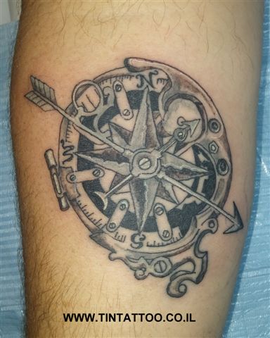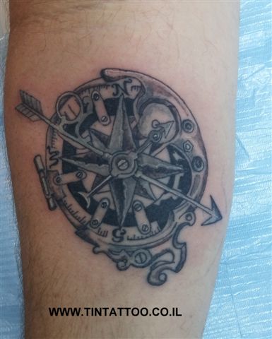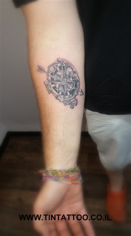 קעקוע מצפן מעניין על הזרוע מידות 14 על 12.
